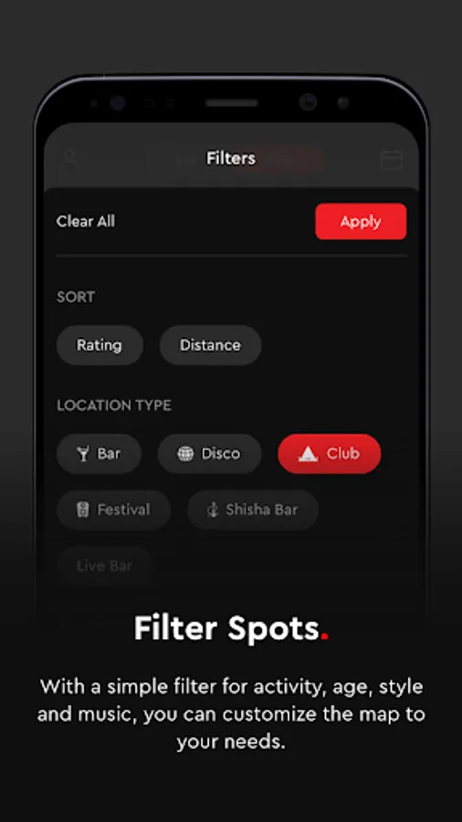 Explore Spots with MapCheck for spots and events around you. You can see where something is going on and who was there.Filter SpotsWith a simple filter for activity, age, style and music, you can customize the map to your needs.