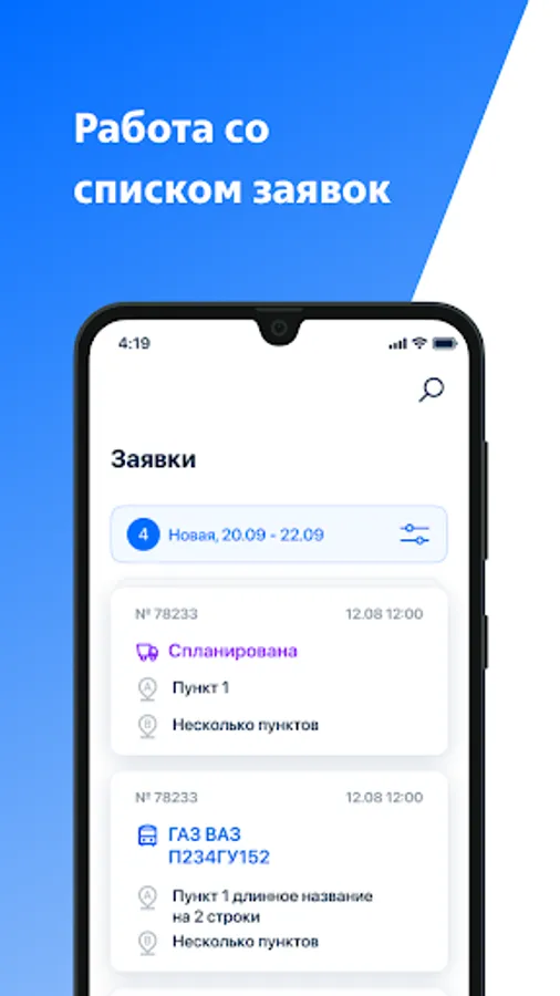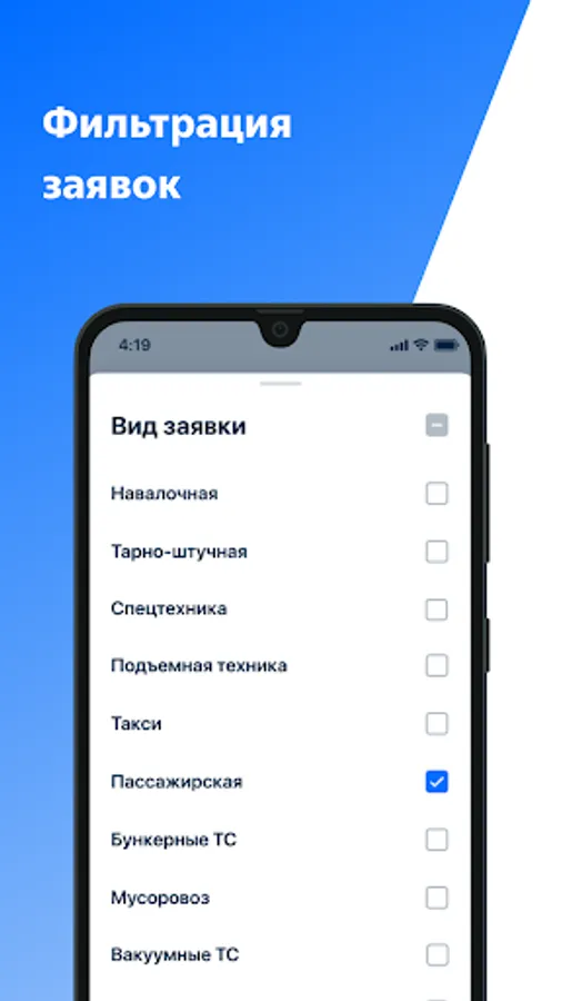 The following functions are available to an NLMK employee in the application: creating requests for vehicles, viewing the list of requests with statuses, approving/rejecting created requests, editing and copying previously created requests, confirming the completion of requests for a Taxi. Available types of requests for creation (depending on the assigned role): "Bulk", "Piece-piece", "Special equipment", "Lifting vehicles", "Passenger", "Taxi service", "Bunker vehicles", "Vacuum (oil trucks) )”, “Cement trucks”, “Bitumen truck”, “Garbage trucks”, “Oversize”, “Detachable body”, “Dump truck with clamshell type manipulator”, “Onboard manipulator”, “Mobile dust suppression systems”, “Water-washing vehicles”, “Sewage TS".
