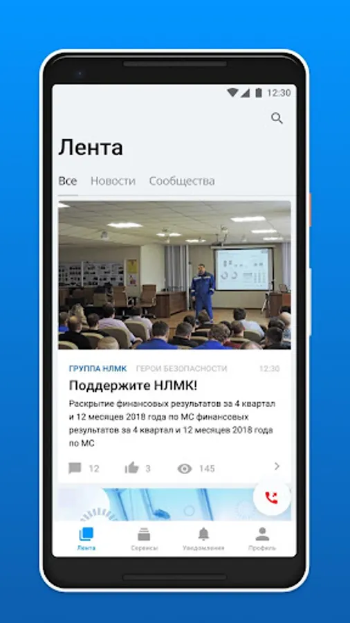 The official application for existing employees of the Novolipetsk Iron and Steel Works group of companies, which allows access to personal data, news, corporate services: