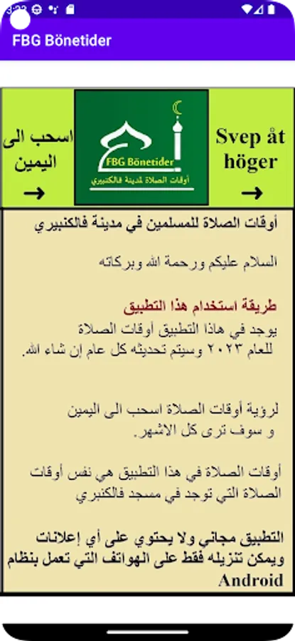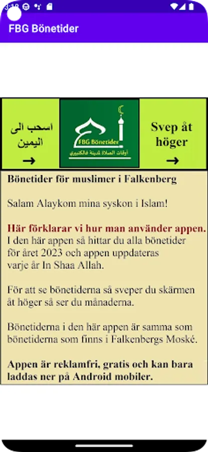 The prayer times in this app are for Muslims living in Falkenberg (Halland).