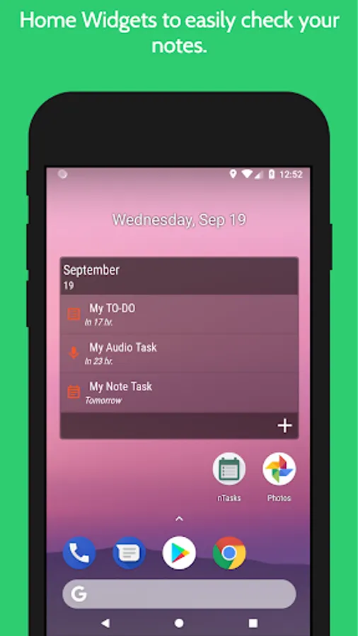 Get easy to access your list of daily tasks and to create a new one using your awesome home widgets,