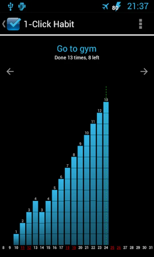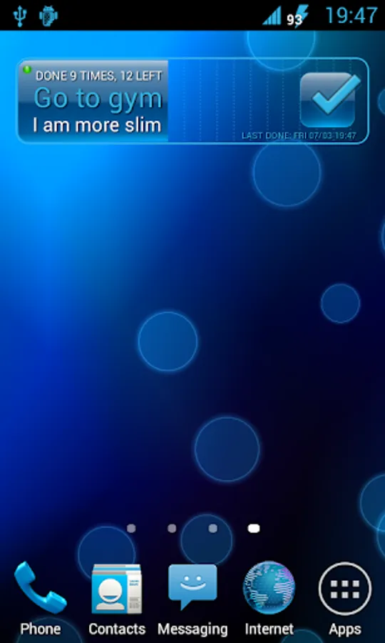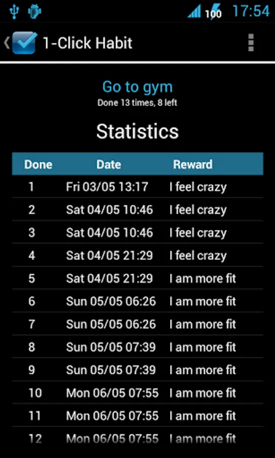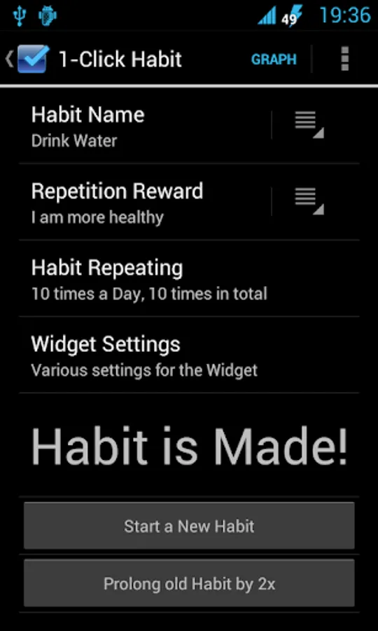 2. Tracking is rewarding every time- the Widget got only 1 button to click after task, and it is clickable directly on Home Screen so no wasting of time consuming menu popups! This motivates to continue and keeps momentum going.