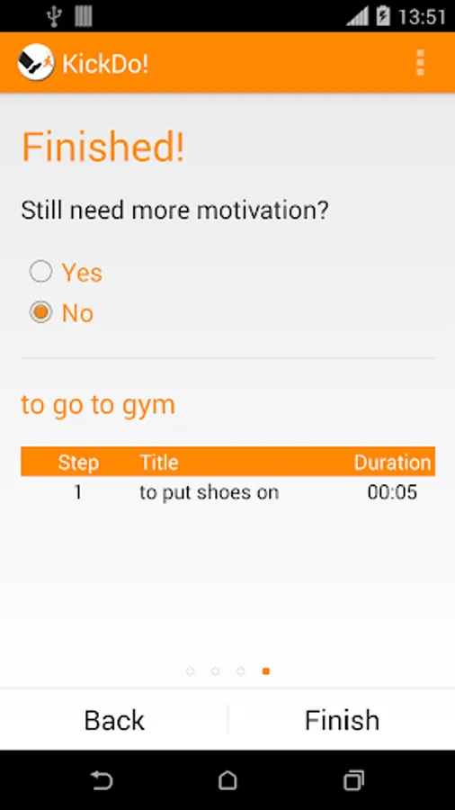 App uses hidden Influence techniques described by R. Cialdinni. Here we hack emotional manipulation on our selves. How this works was proven in hundreds of tests where people start doing even if they don't have motivation to do it. How? Thirst thing which goes here is Continuity effect. It was scientifically proven that if you start with very little step and get easy small reward - you cannot stop. Don't try it if you plan to sit at TV all day:)