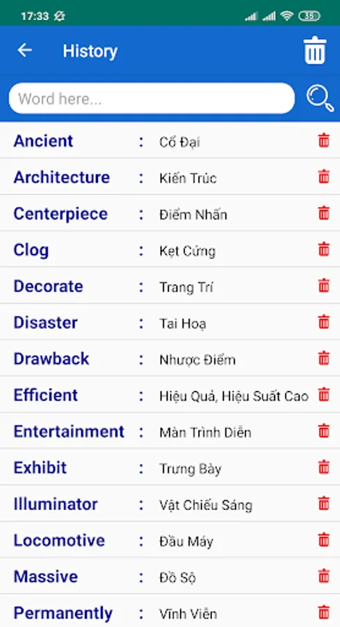 Also you can review all the words you have learned, make notes of your own vocabulary in the history section.