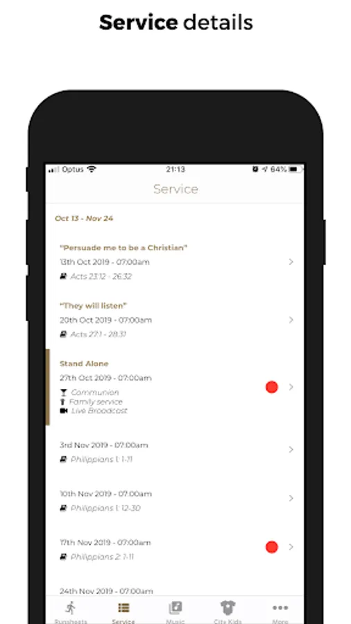 This is the app used by City on A Hill West members to access service details and other details that are required to run the service.