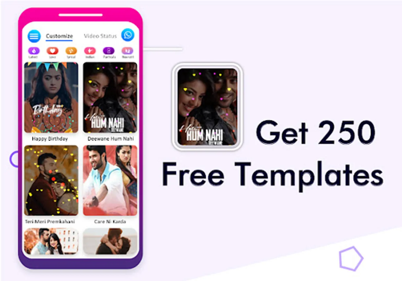 Music Status Video Maker with Songs 2021 has lyrical video templates and Magic Video art. A simple yet powerful mast app that can make videos using photos. You can become a master in editing videos. Photo se video banane wala app.