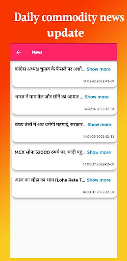 In this application when you download you will get Commodity news like Loha, Edible Oil, Metal, Plastic, Pulses, Steel, Agri, etc.