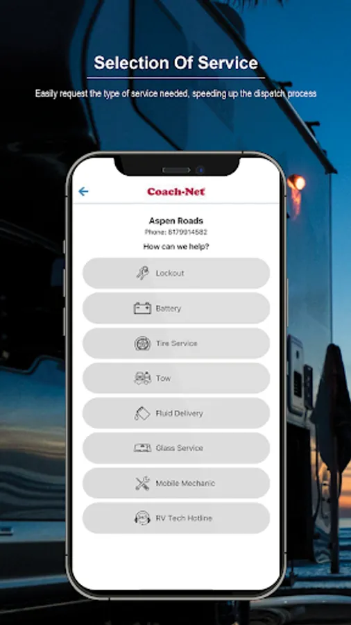 Coach-Net Mobile app enables our members to quickly and easily access important membership information and request roadside assistance in just a few simple steps, giving the user more options to request the assistance right for their particular situation. Leverage Coach-Net’s nationwide 24/7 roadside service provider network and your phone’s GPS capabilities to route assistance directly to your location.