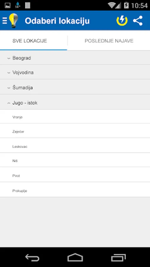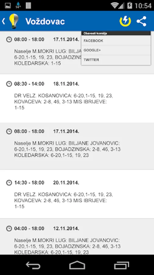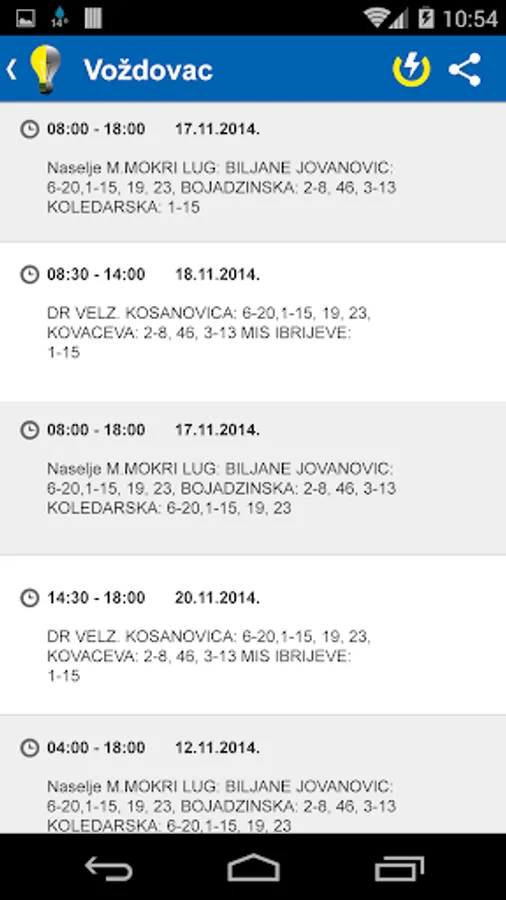 Mobile app used to inform the people of Serbia about the power cuts due to work on the electricity network of Serbia.