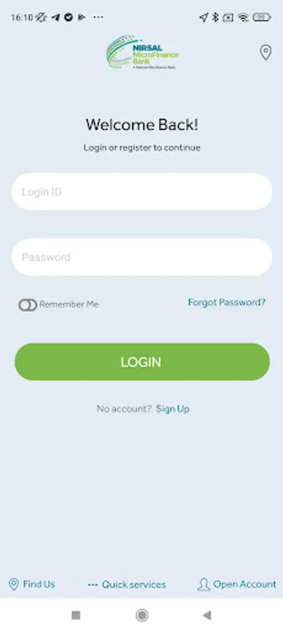 • Enter your NIRSAL MFB account number as username and your registered phone number