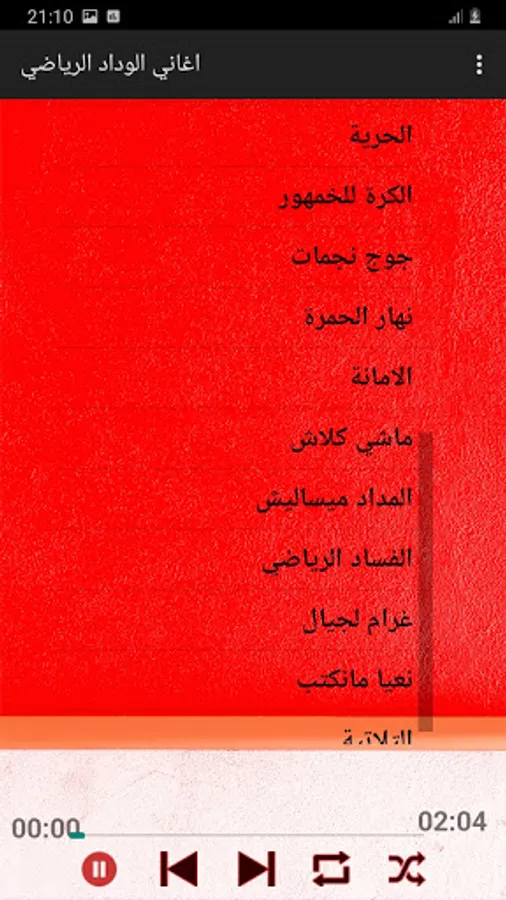 This application offers you a list of all Wydad songs or Wydad's favorite songs, dedicated to fans of Wydad Sports Club or Wydad Casablanca, to Wydad fans and Moroccans who support Wydad, as well as to members of Winners