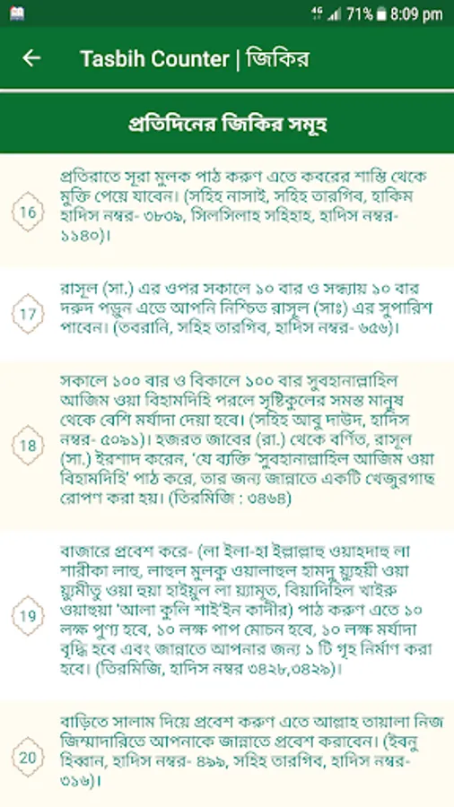 Tasbih counter is a digital counting application for your android smartphone. It helps to count your daily dhikr and other important tasbehaat in a very smart and easiest way. This application should be used for praying and making yourself closer to Allah (SWT).