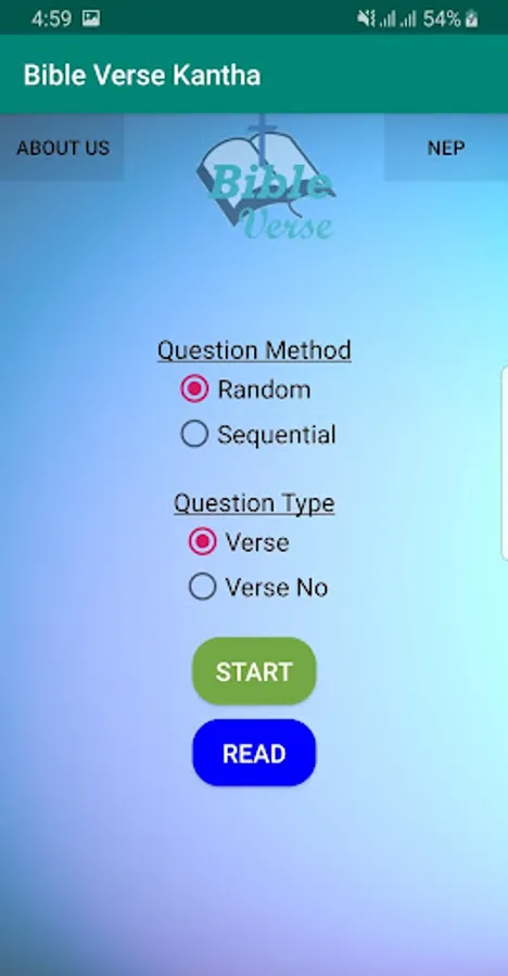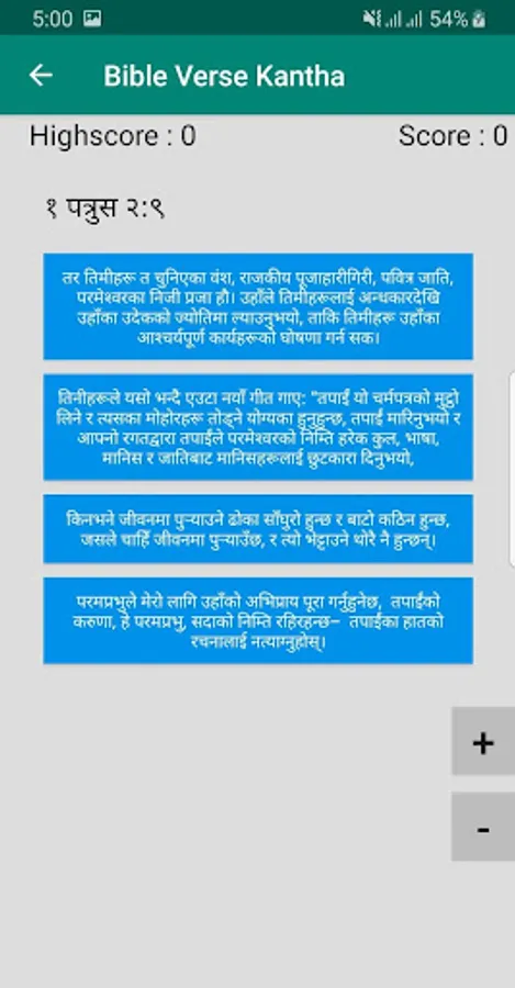 परमेश्वरको जिवित बचन मनन गर्न सजिलो होस् भन्ने उदेश्यका साथ यो app बनाइएको हो | यसमा २५० वटा पबित्र बाइबलको पदहरु छन् | पद वा पद वाक्य को आधारमा क्रमिक वा छ्यासमिस प्रस्न गरि प्रस्नोतर जसरि खेल्न सकिन्छ |