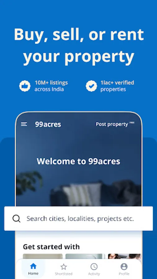Welcome to 99acres.com, India’s highest-rated property app for buying, selling and renting real estate. This is the only property app you require for all your real estate needs for searching, shortlisting and finalizing property of your choice. Be it a ready-to-move flat in a new project, investment in shops, offices or showrooms, or girls PG or boys PG in your city, app has listings from qualified property agents & top builders as well as no brokerage properties.