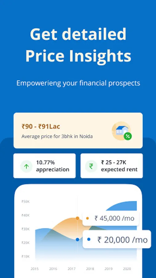 ✓Track price trends in your locality, city with 99acres property app. Access property transaction prices, locality insights and latest real estate trends with interactive graphs and charts.