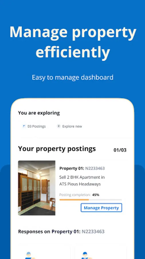 ✓99acres housing app also connects homeowners to homebuyers and tenants. This property selling app for homeowners helps with services like dedicated relationship manager, posting through WhatsApp, etc.