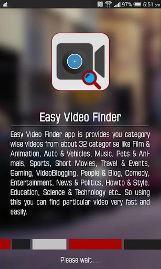 Easy Video Finder app is provides you category wise videos from about 32 categorise like Film & Animation, Auto & Vehicles, Music, Pets & Animals, Sports, Short Movies, Travel & Events, Gaming, VideoBlogging, People & Blog, Comedy, Entertainment, News & Politics, Howto & Style, Education, Science & Technology etc... So using this you can find particular video very fast & easily.