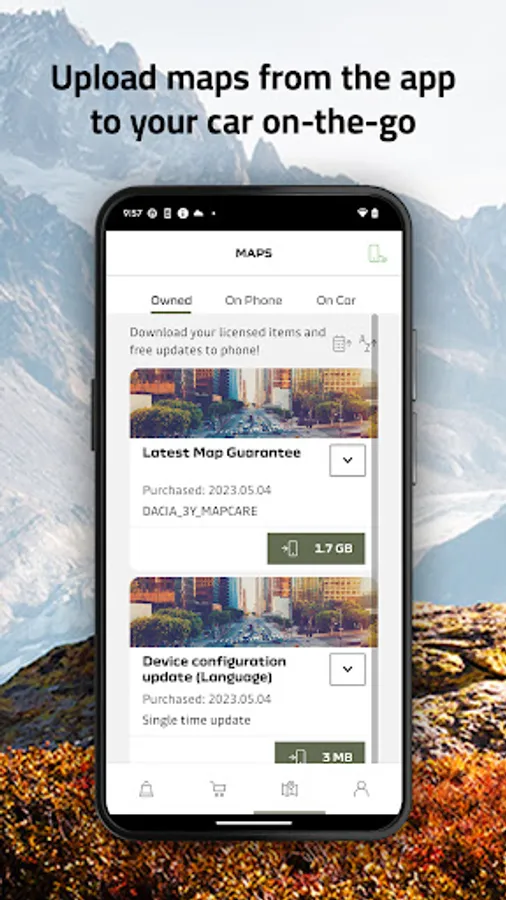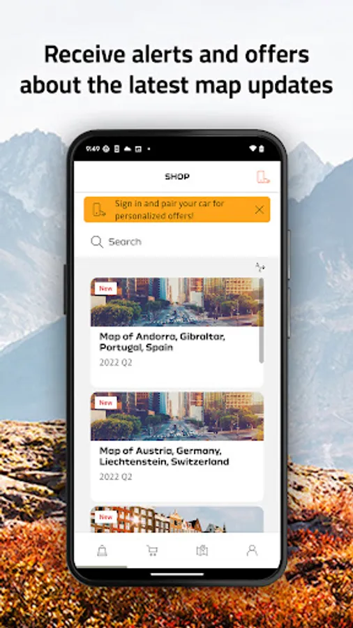 Browse for existing free updates or find new maps and purchase directly in-app. Great for when you need a new map on the go.