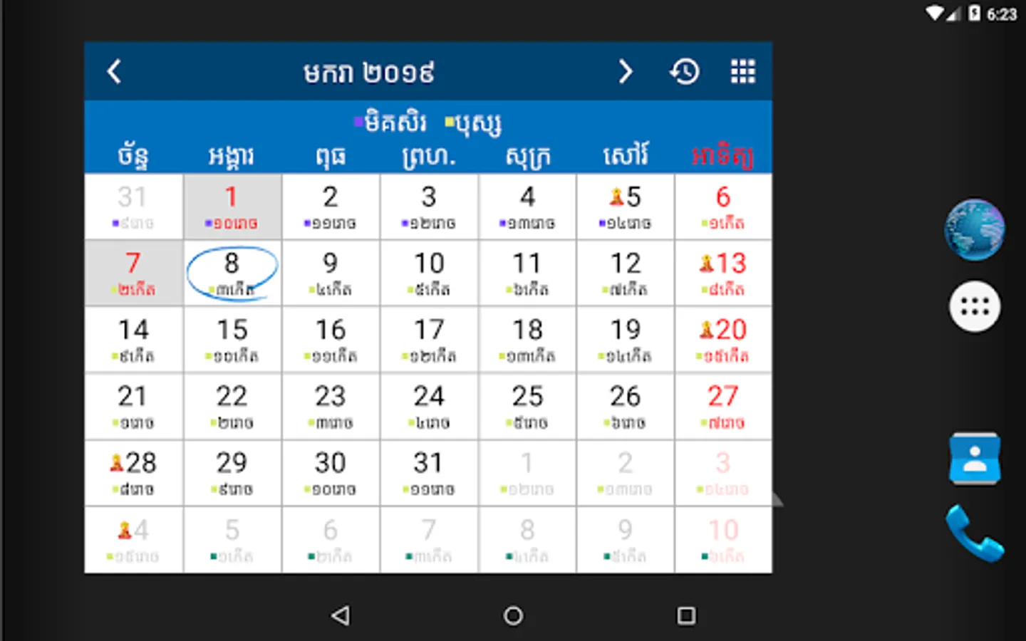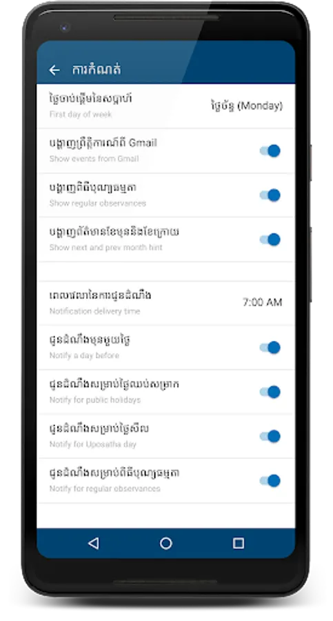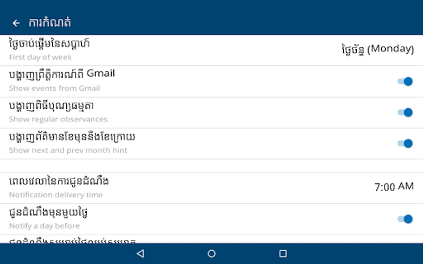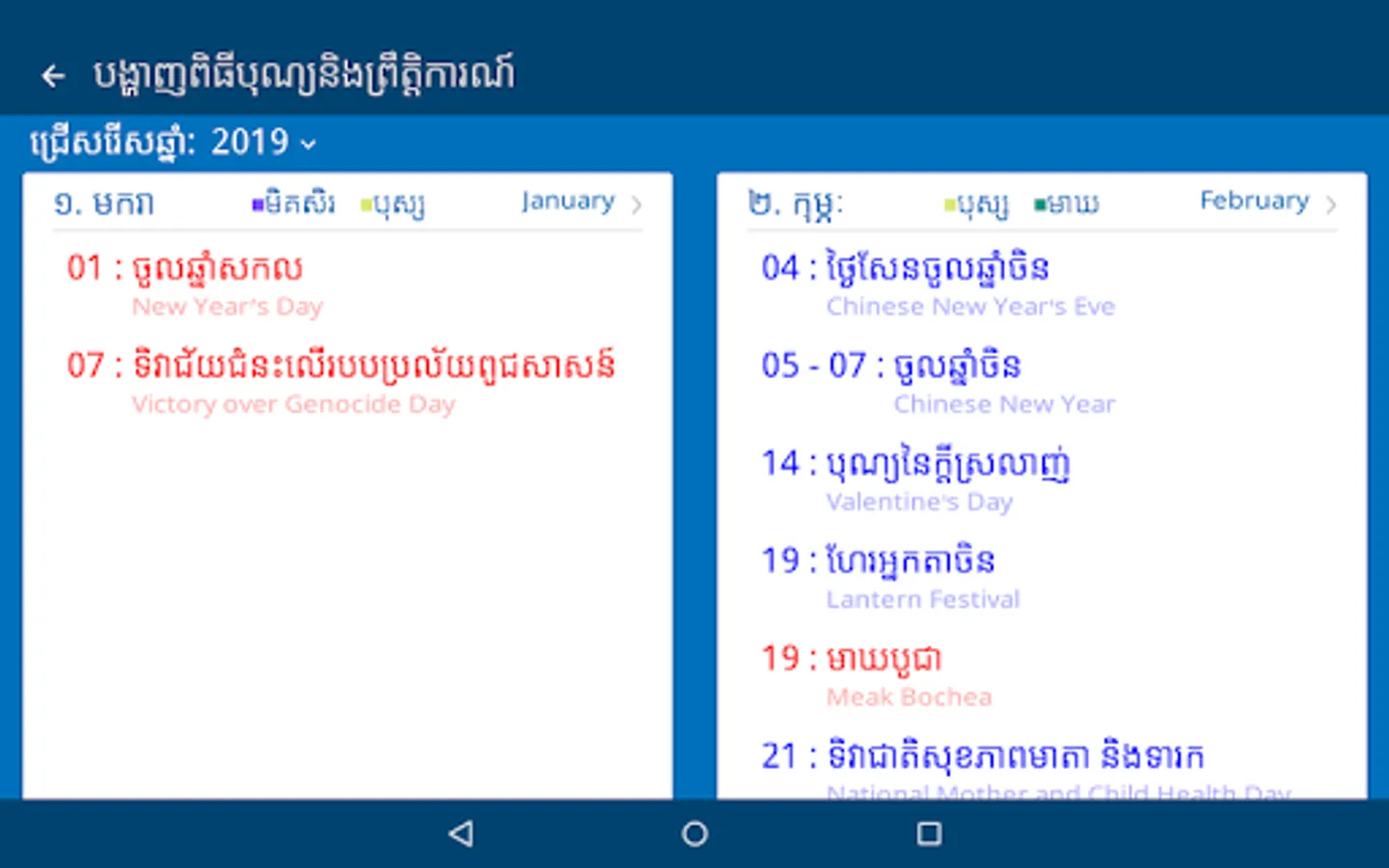This app has build in 5000 years and include Cambodia holidays, religious ceremonies, user can create events and events are auto sync with google calendar.