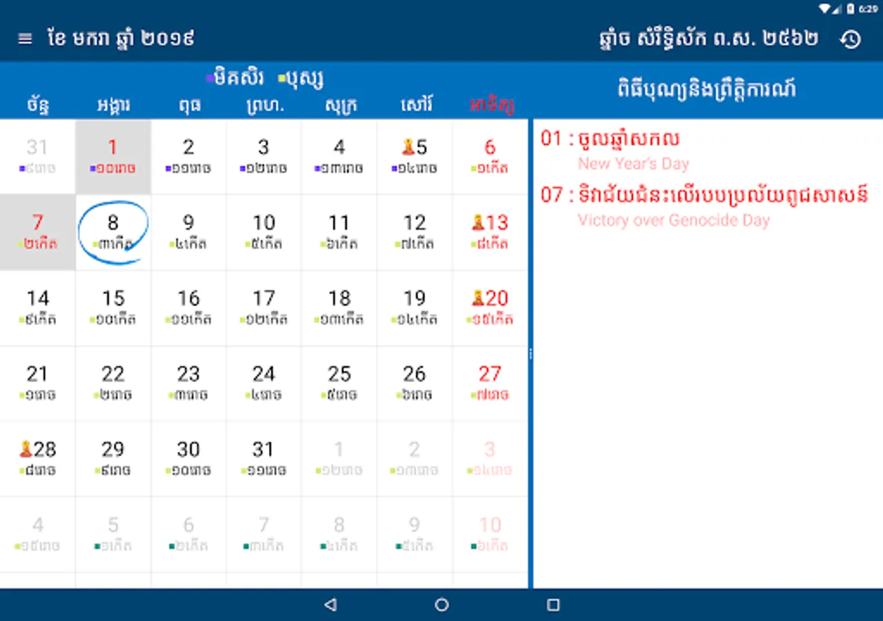 Khmer Calendar 5000 is the combination of Gregorian calendar with Lunar calendar.