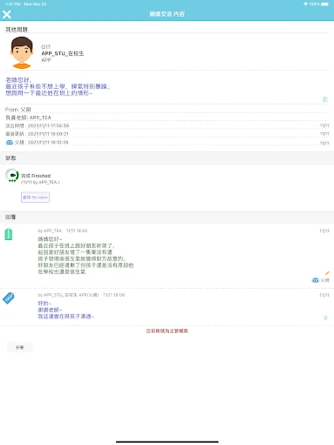 1. Parent-teacher communication: Parents communicate with class teachers one-on-one on specific matters.
