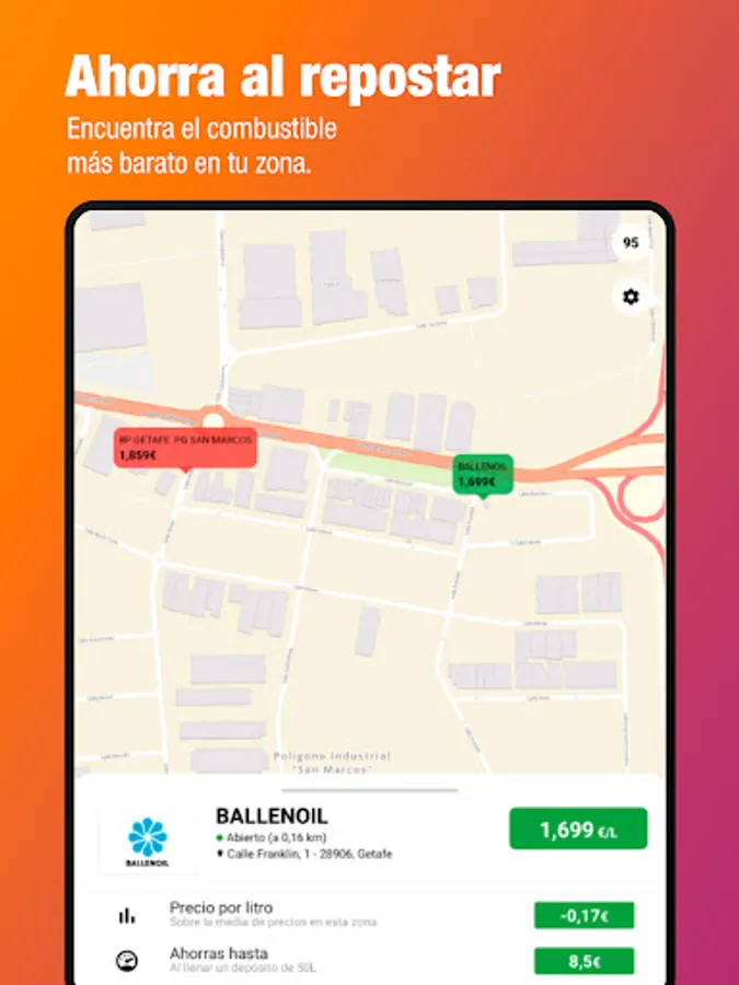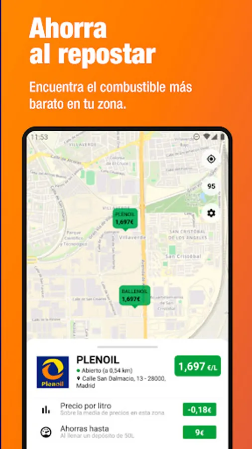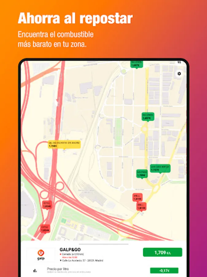 GasRadar allows you to quickly compare and find the cheapest price instantly among all public gas stations in the Spanish territory.