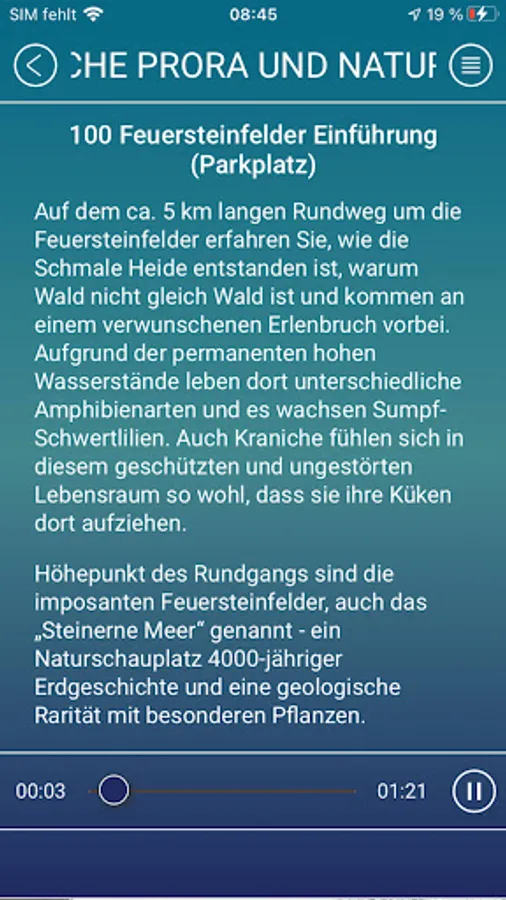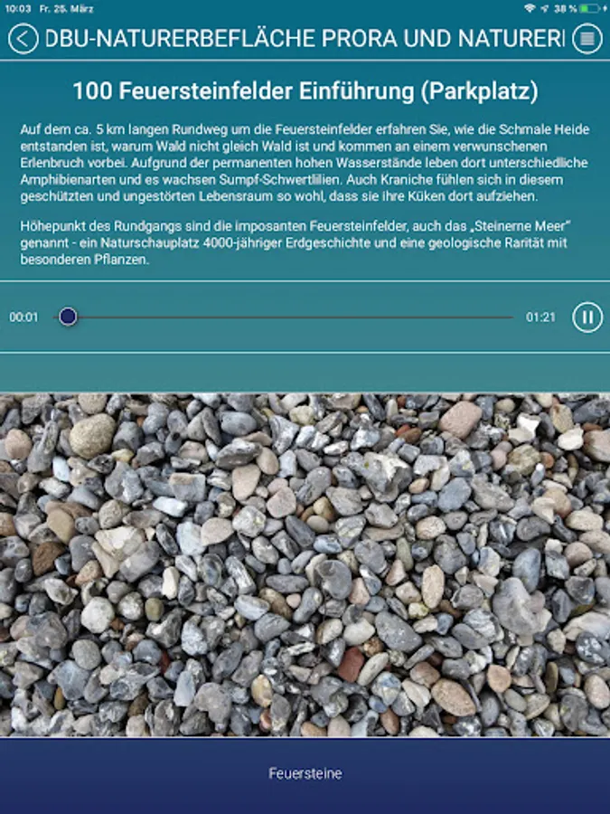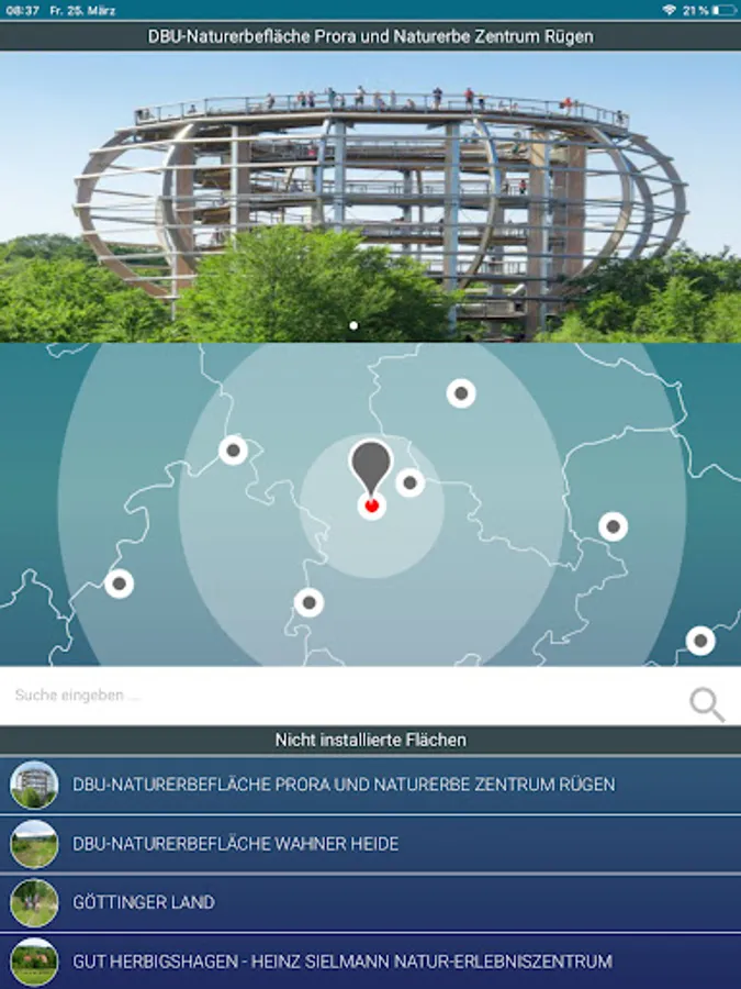 Until now, waiting for you tours of the DBU natural heritage area Prora on Rügen, just a few kilometers away from Binz and. Through the exhibition and the Baumwipfelpfad the Heritage Centre COMPLAINTS amid the area You can also explore areas along the Green Belt of the Heinz Sielmann Foundation. Coming soon also tours through the DBU natural heritage area Wahner Heide and through the Königsforst are available for download. Over time, an increasing number of natural heritage areas are displayed in the app.