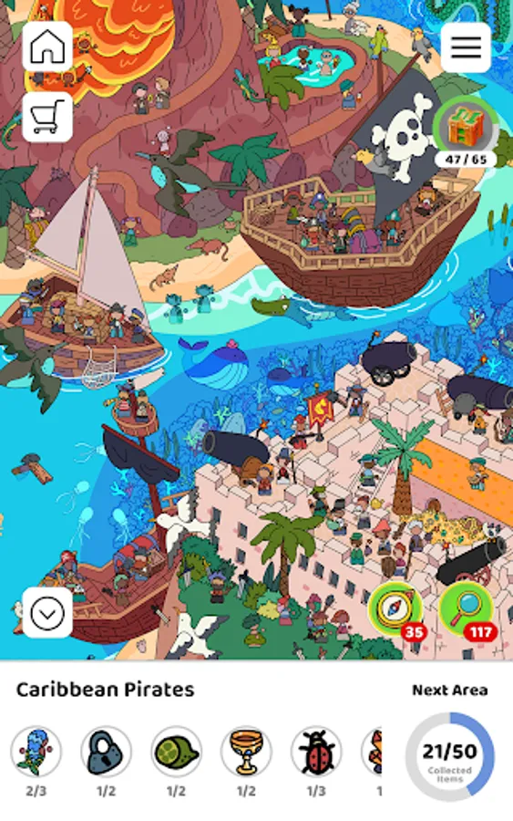 Seek and find games have never been this fun! Search, find, and collect hidden objects throughout the maps on your journey to unlock more maps in this search and find game! Hidden pictures are everywhere - under a tree, next to granny, or on the roof? Zoom in and swipe through the map to collect all the hidden objects.
