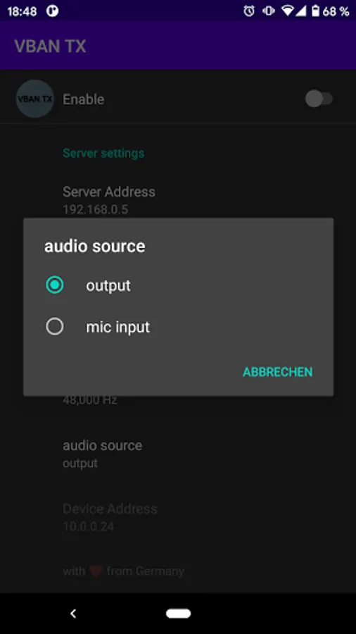 This app takes your Android audio output and sends it over the network to Voicemeeter.