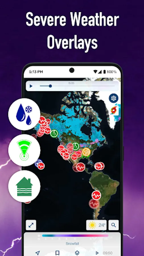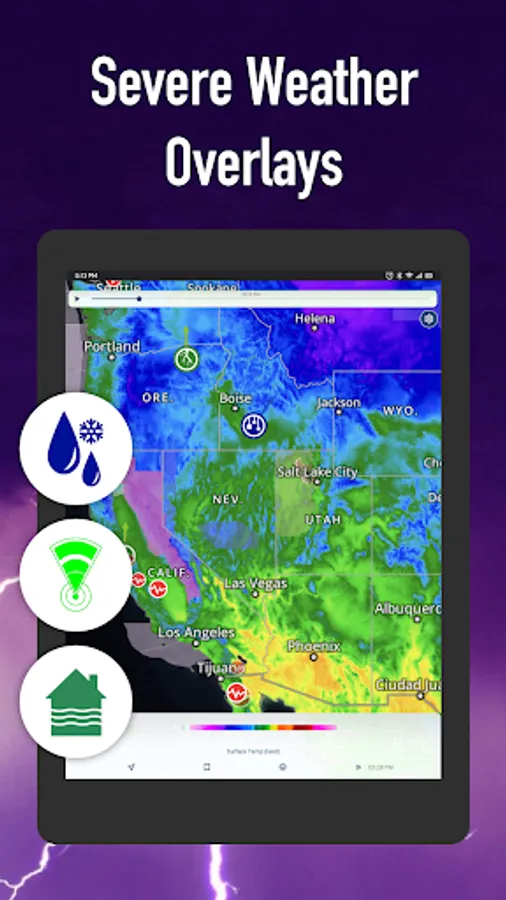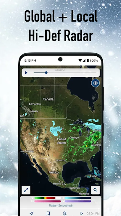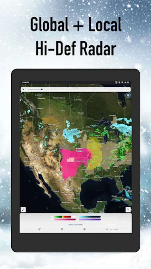 Weather Hi-Def Radar is a simple yet powerful weather radar app that features real-time animated weather radar images in vivid color on a highly-responsive interactive map. View future forecasts and detailed weather information with map layers, including snowfall and windspeed.