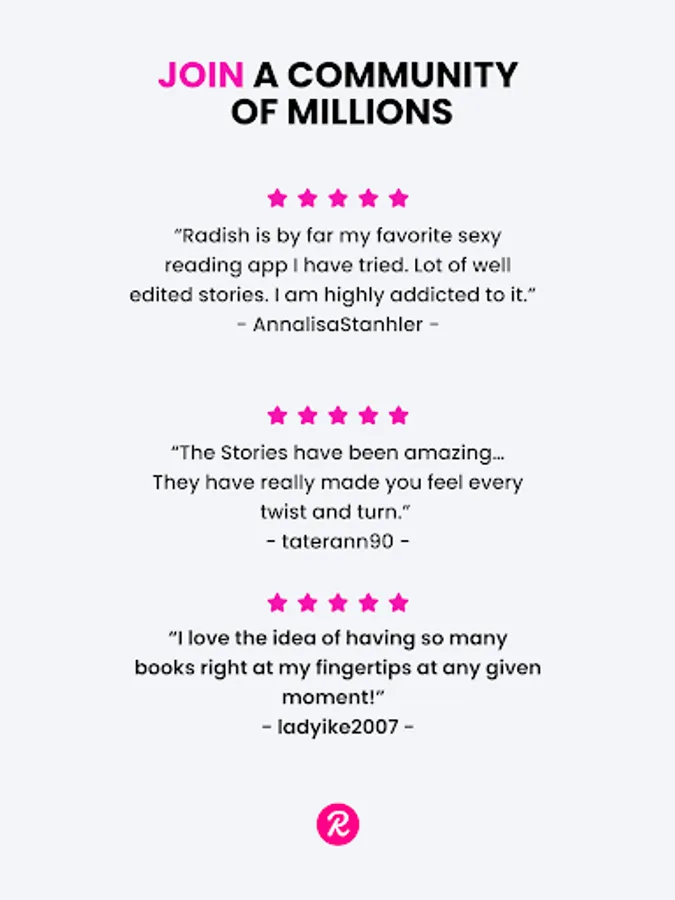 • Radish is a mood. It’s all the binge-worthy stories you can handle 🪄 With our curated collection, Bundle ‘n’ Binge, read easily digestible, completed stories at a discounted price with one click.