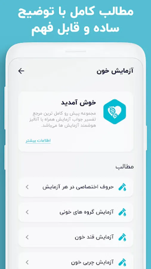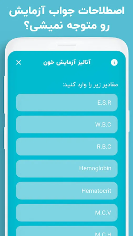 اگر به دنبال معنی M.C.V در آزمایش خون خود هستید و یا معنی عبارت CRP در آزمایش را نمیدانید، یا HDL و LDL و Cholesterol برای شما نامفهوم است، حتما اپ مرجع کامل جواب آزمایش را استفاده کنید و بدون نیاز به صرف هزینه های گزاف برای مراجعه به دکتر، خودتان اقدام به تفسیر جواب آزمایش کنید.