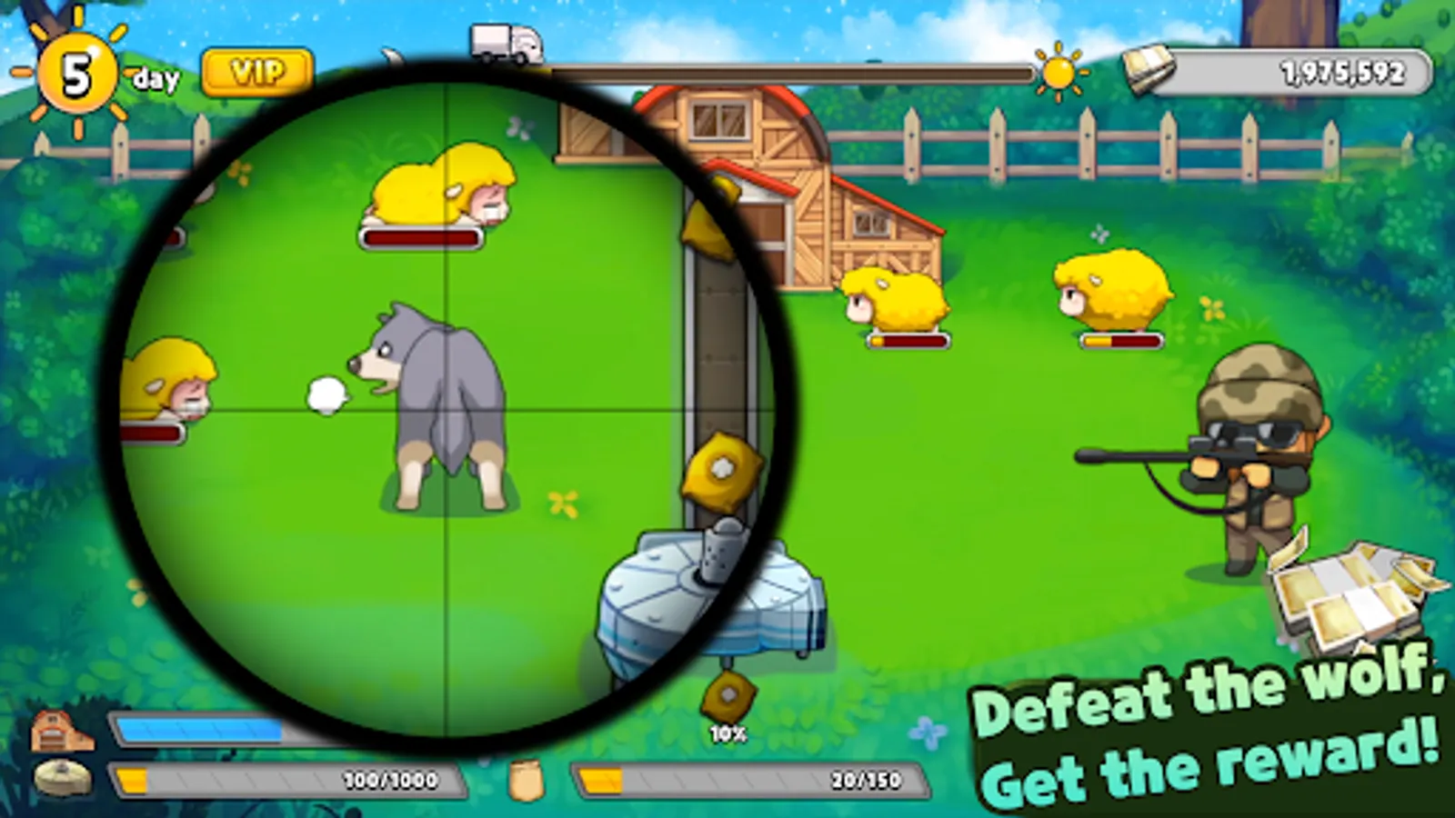 - Defeat the hungry wolves who prey on the sheep.