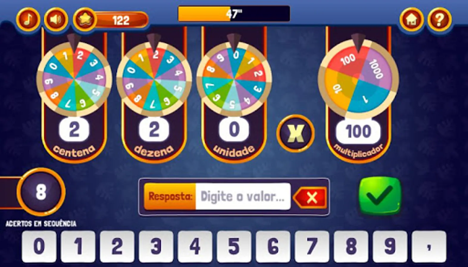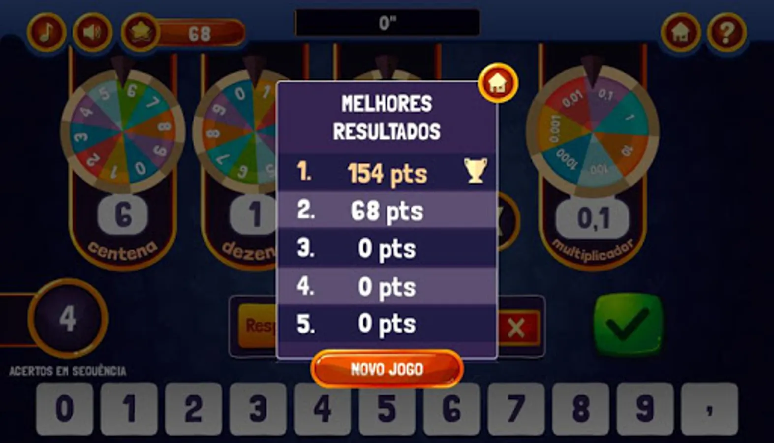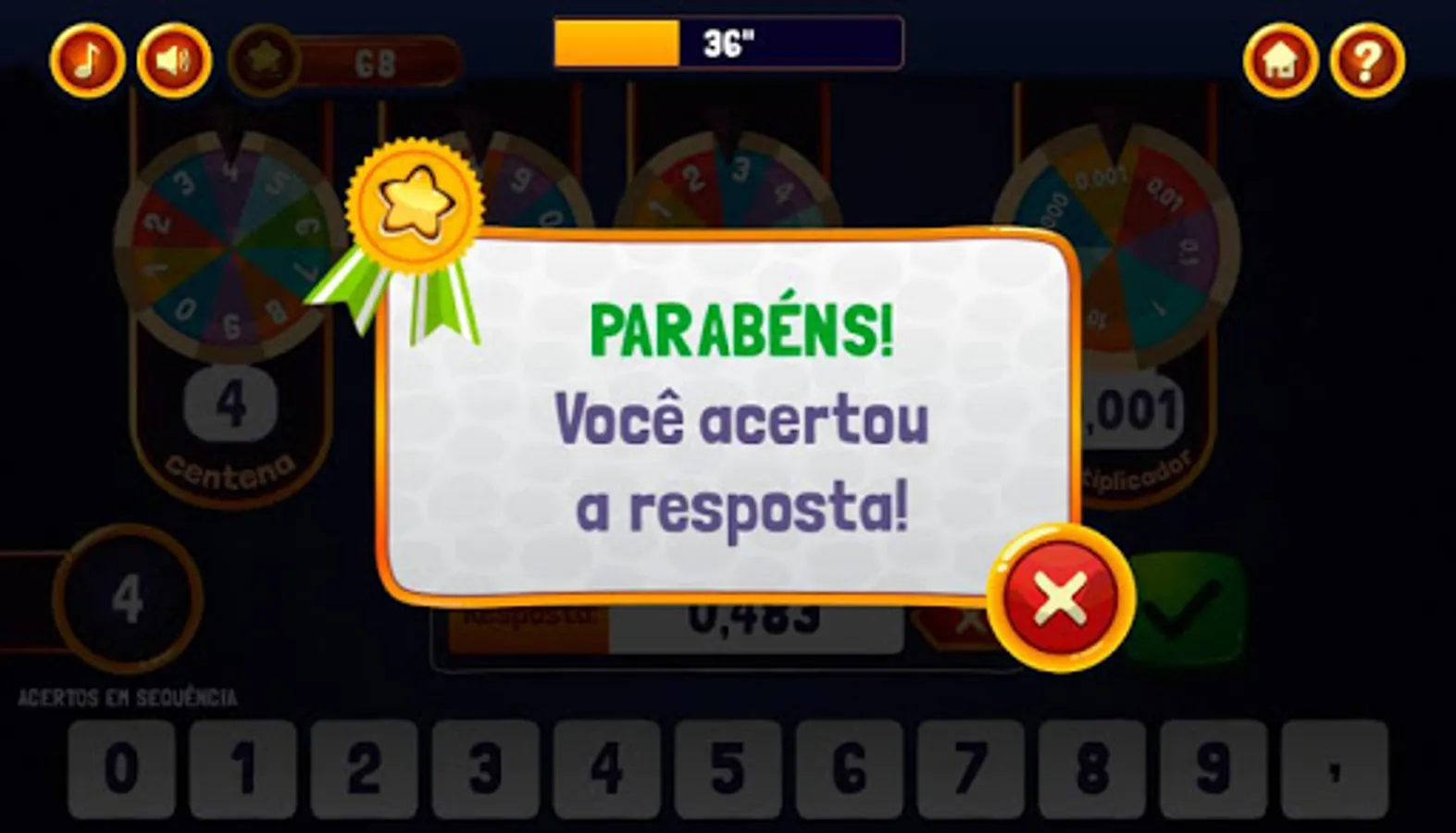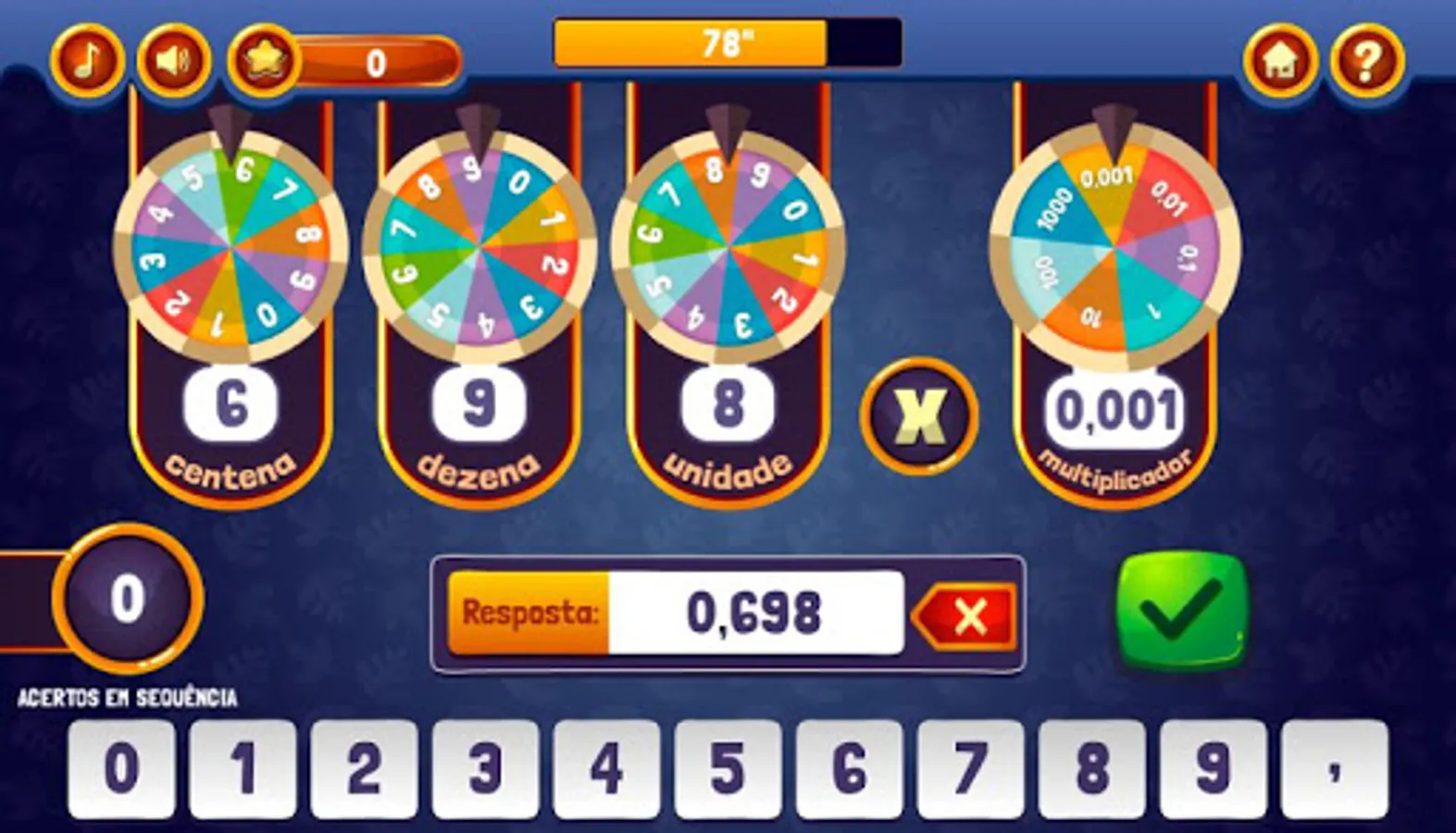 You want to make your game more difficult? If you already know operations with decimals, click the "COM DECIMAL" button, otherwise, click Continue, and good game!