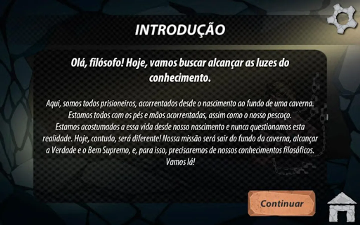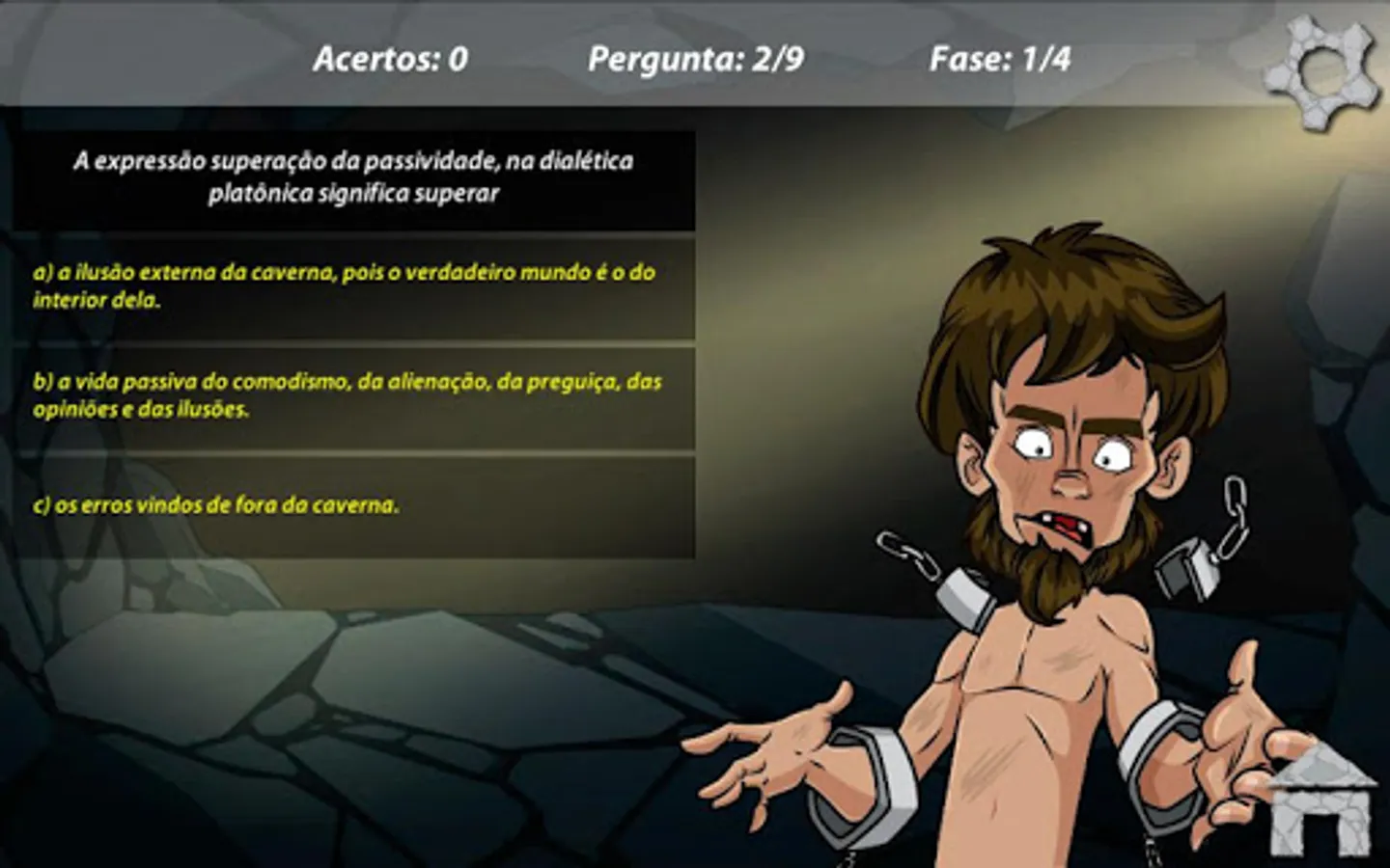 There is a prisoner who, through the manipulation of the player tries to leave the bottom of a cave, answering to different questions at the end, behold the light of knowledge.