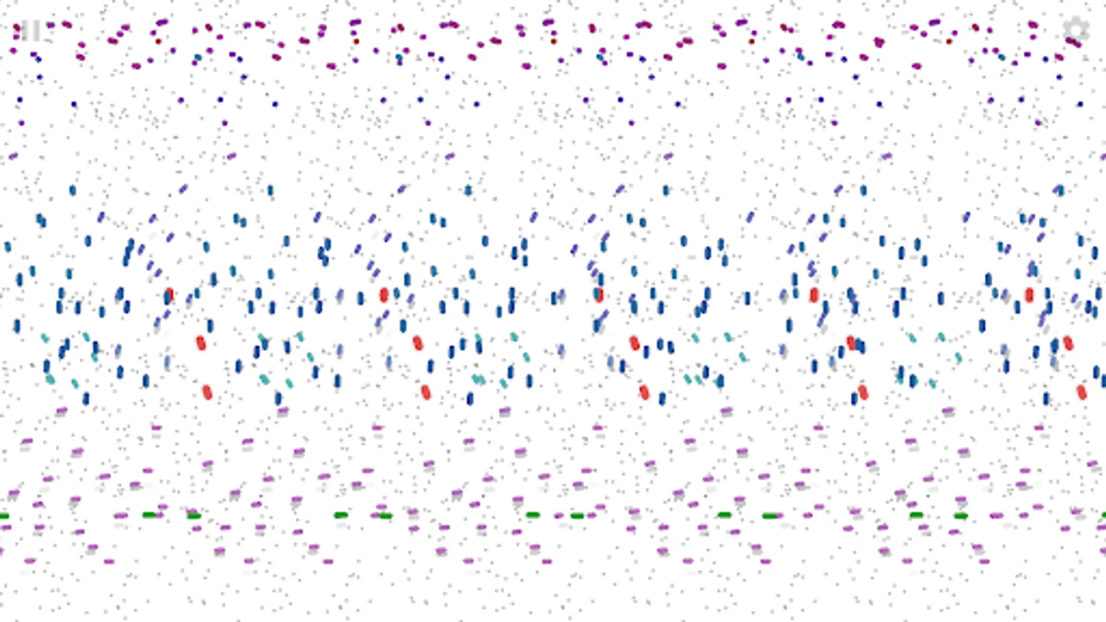 The combination of "stereogram," which enables stereoscopic vision without special devices, and "boid," which simulates schools of birds or fish with simple rules, has created the beautiful world of Neonfishes.