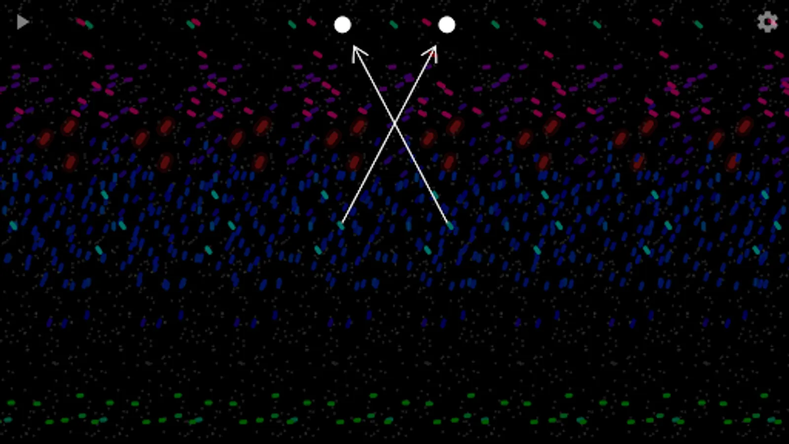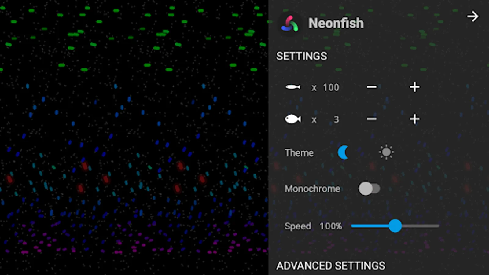 The combination of "stereogram," which enables stereoscopic vision without special devices, and "boid," which simulates schools of birds or fish with simple rules, has created the beautiful world of Neonfishes.