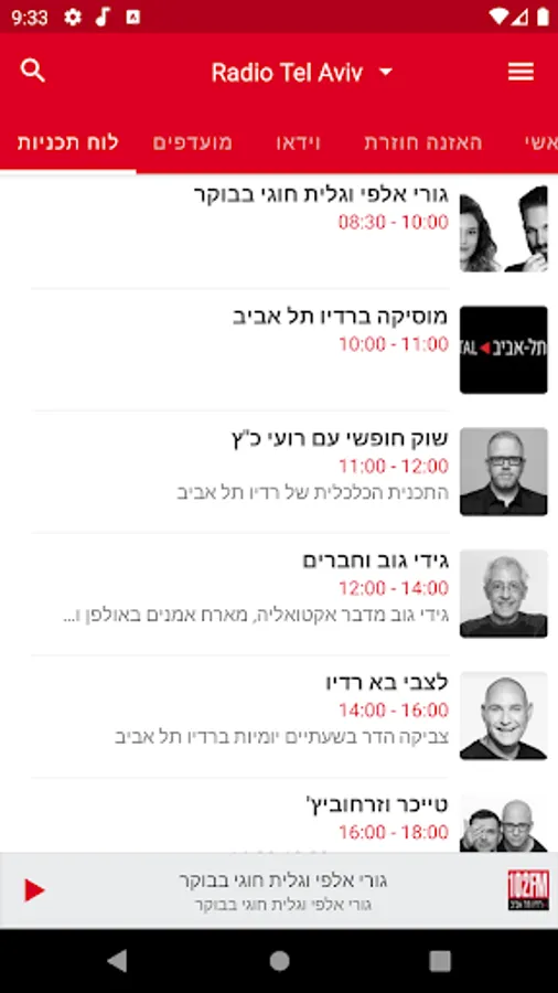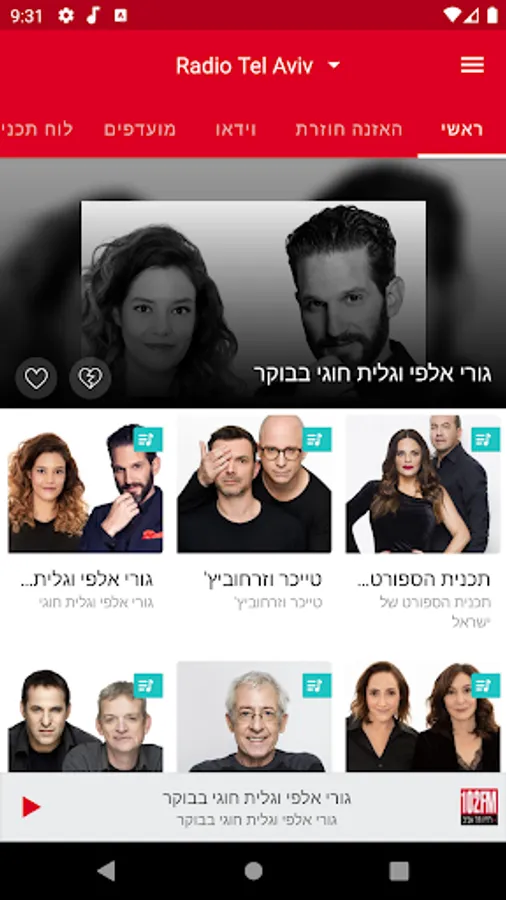 Tel Aviv Radio App allows you quick access to a huge variety and quality of content transmitted frequency channel station FM102 and unique music content and broadcast exclusively in the app. The content of Radio Tel Aviv (audio, video, Restobar Social) is available free app for listening to and watching instant or delayed (On Demand) anywhere, anytime.