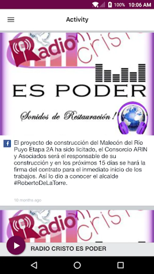 This application is the official, exclusive application for RADIO CRISTO ES PODER under an agreement between RADIO CRISTO ES PODERand Nobex Technologies.