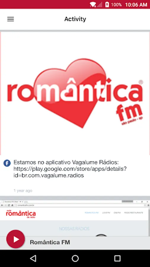 This application is the official, exclusive application for Rádio Romântica FM under an agreement between Rádio Romântica FM and Nobex Technologies.
