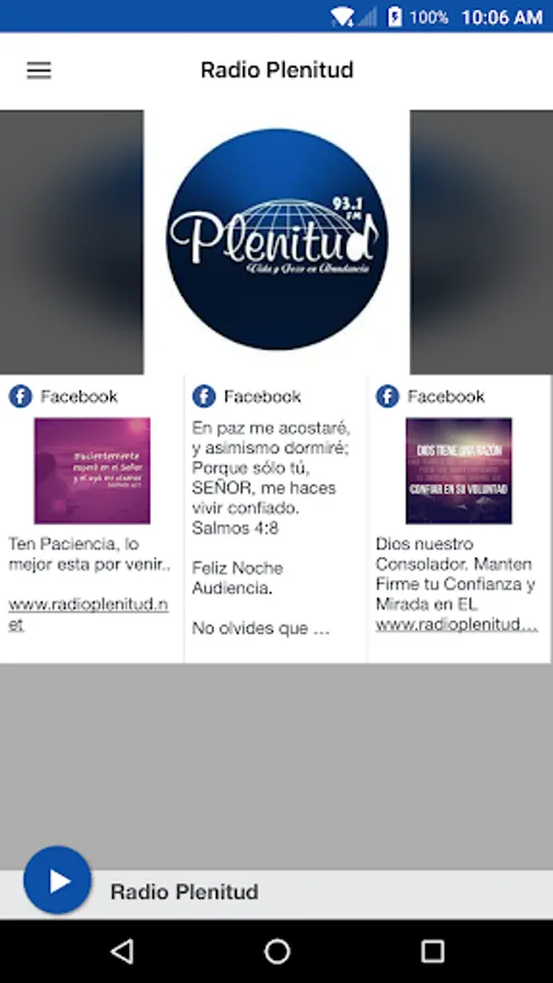 This application is the official, exclusive application for Radio Plenitud under an agreement between Radio Plenitud and Nobex Technologies.
