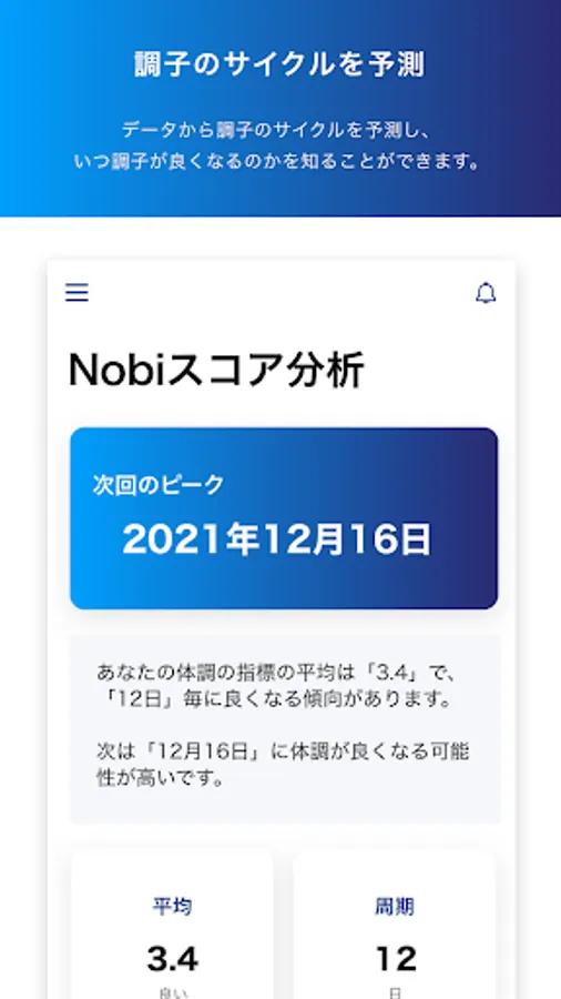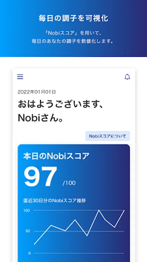 Nobi is an application that analyzes body and subjective data and quantifies your condition with a unique index (Nobi score).