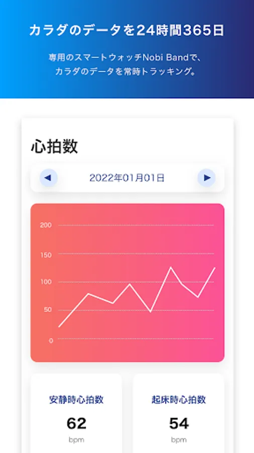 We analyze the body data acquired from the Nobi-dedicated smart watch "Nobi Band" and the condition check data (subjective data), and quantify your condition.
