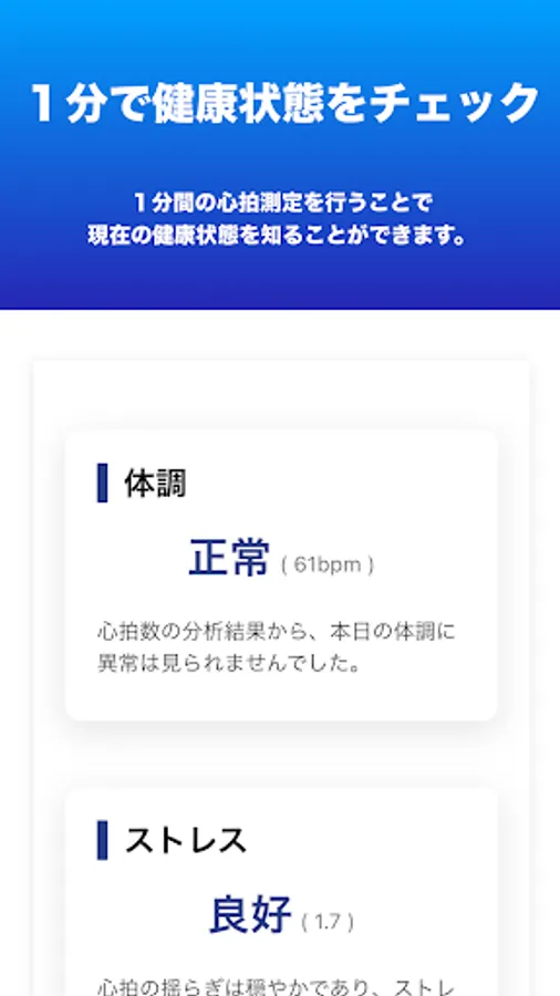 By wearing the Nobi Band and operating the app, you can measure your heart rate for 1 minute.