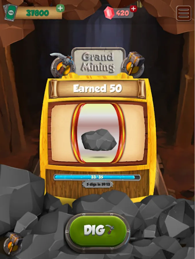 Unlike another jewel match 3, matching jewel games, and crush games, Grand Mining gives you opportunities to earn gems, digs, and virtual cash, so you can play match 3 all day.
