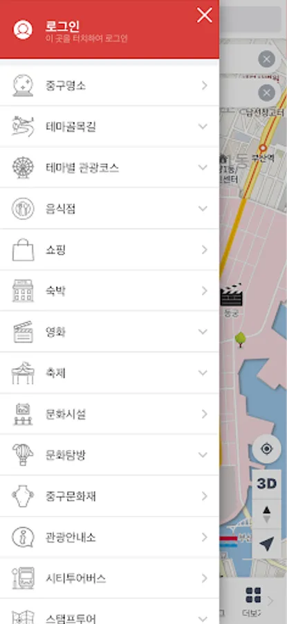 The main tourist attractions are displayed on the map as animated or general icons, and restaurants and lodging establishments are displayed as pictogram icons, and detailed information is provided by touching each icon.