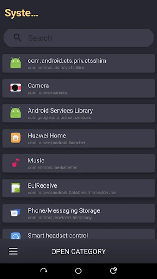 11. Information about the list of system applications.