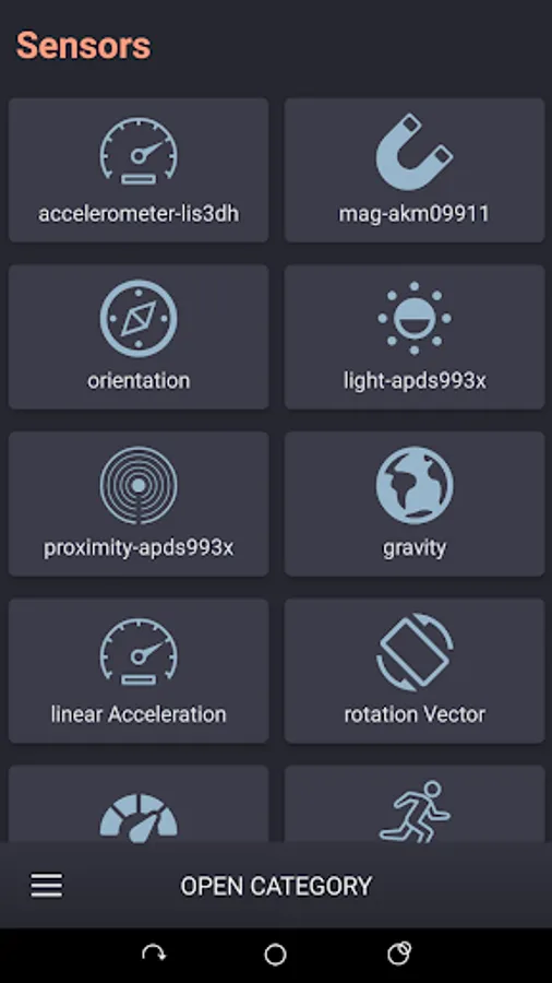12. Information about the sensors of the device.