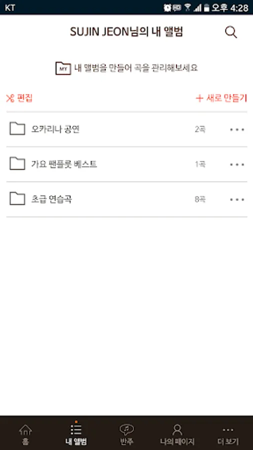 6) Playback without Internet: If you create my album and download and use MR according to the situation, you can use it regardless of Internet connection, etc.