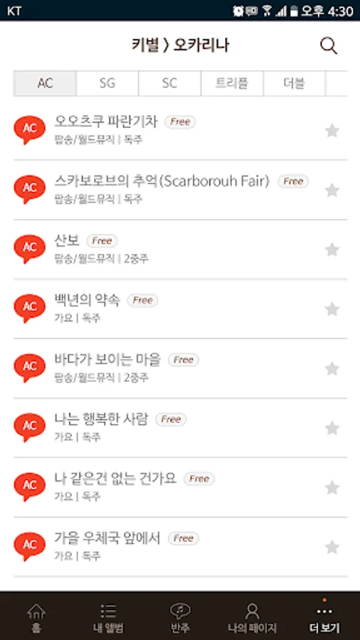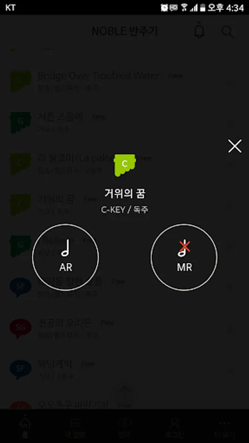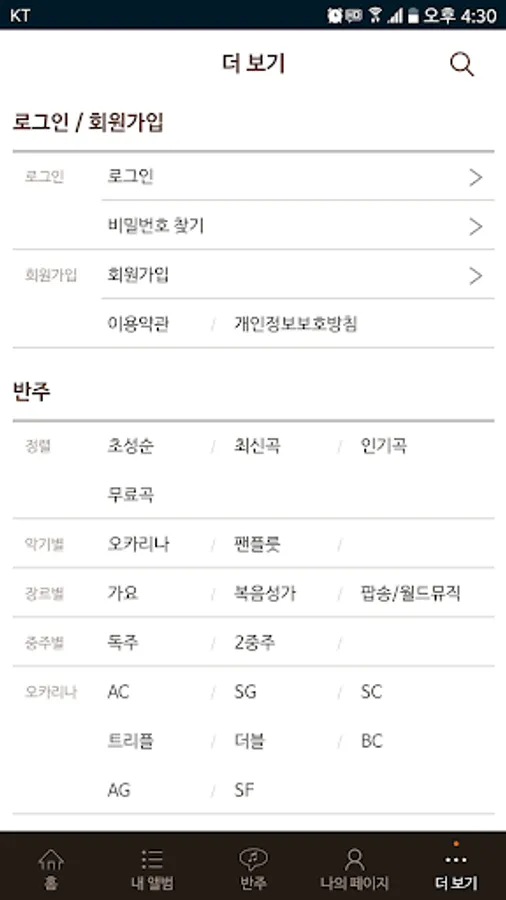 3) Various instruments: You can select MR by instrument, genre, quartet, and key.